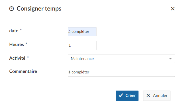 - Cliquez sur l'horloge pour déclarer des heures de maintenance